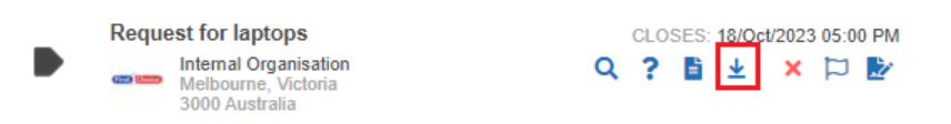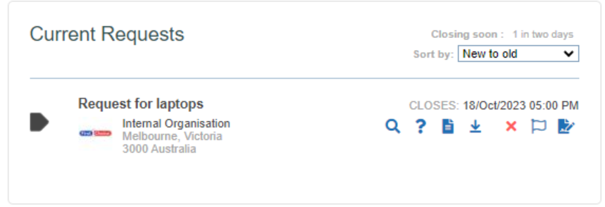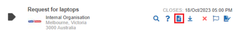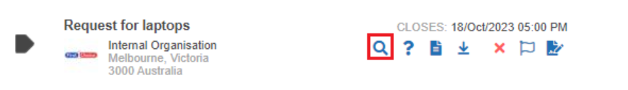 - To view the details of a Request or Tender, click the magnifying glass icon located to the right of the listing. This will open a pop-up window.