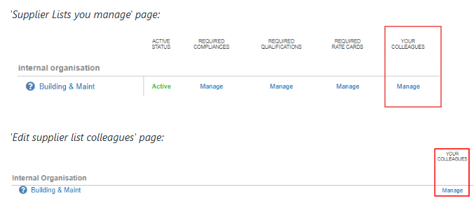 1. Select either the Supplier lists you manage or Edit supplier list colleagues option.