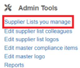2. Select Supplier lists you manage from the options within the Admin Tools menu.
