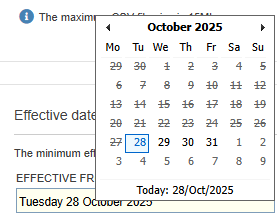• Click in the date field to open a pop-up calendar and select your desired starting date.