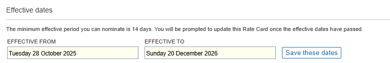 The Rate Card will prompt you for an update once the effective dates have passed.