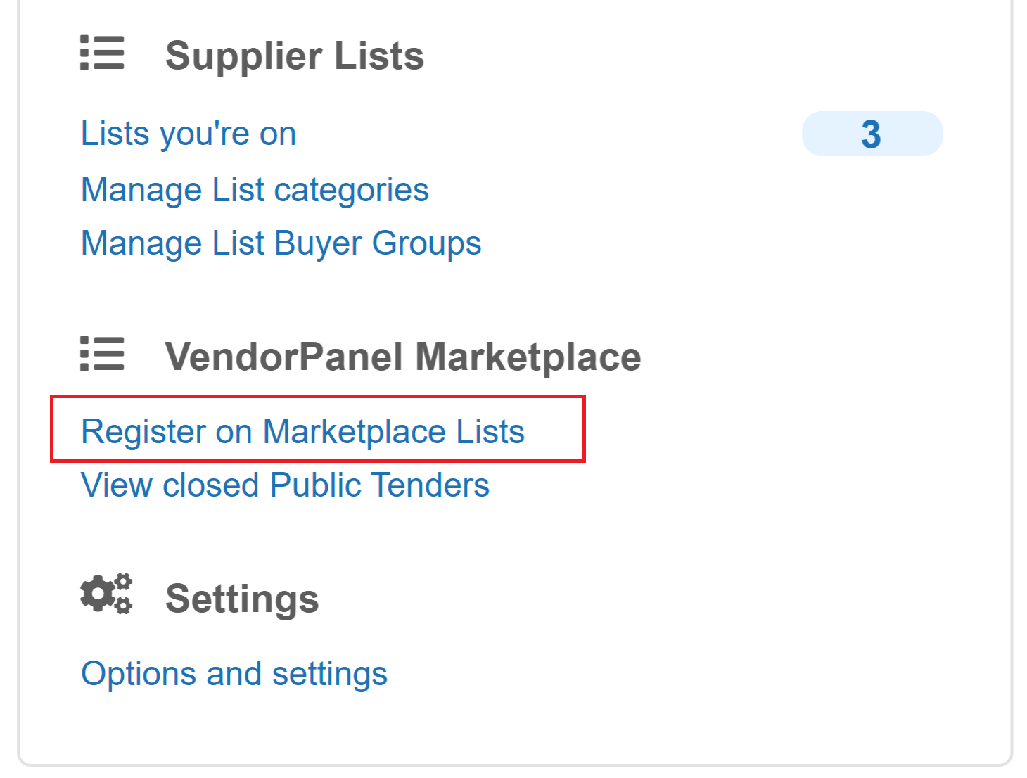 Your registration within specific categories under your Marketplace Supplier Lists also influences the content of your Tender Digest.
