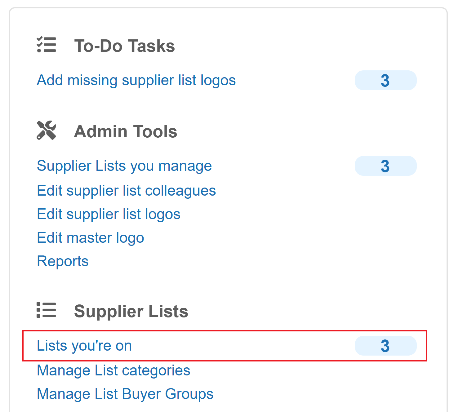 - Go to the Supplier Lists You’re On page, via the link on your dashboard.