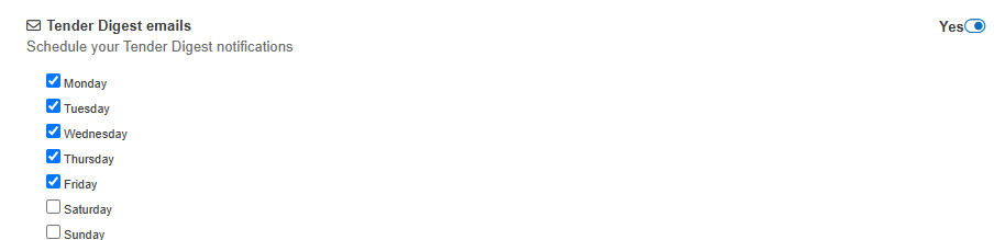 - Choose the specific days of the week you wish to receive the Tender Digest.