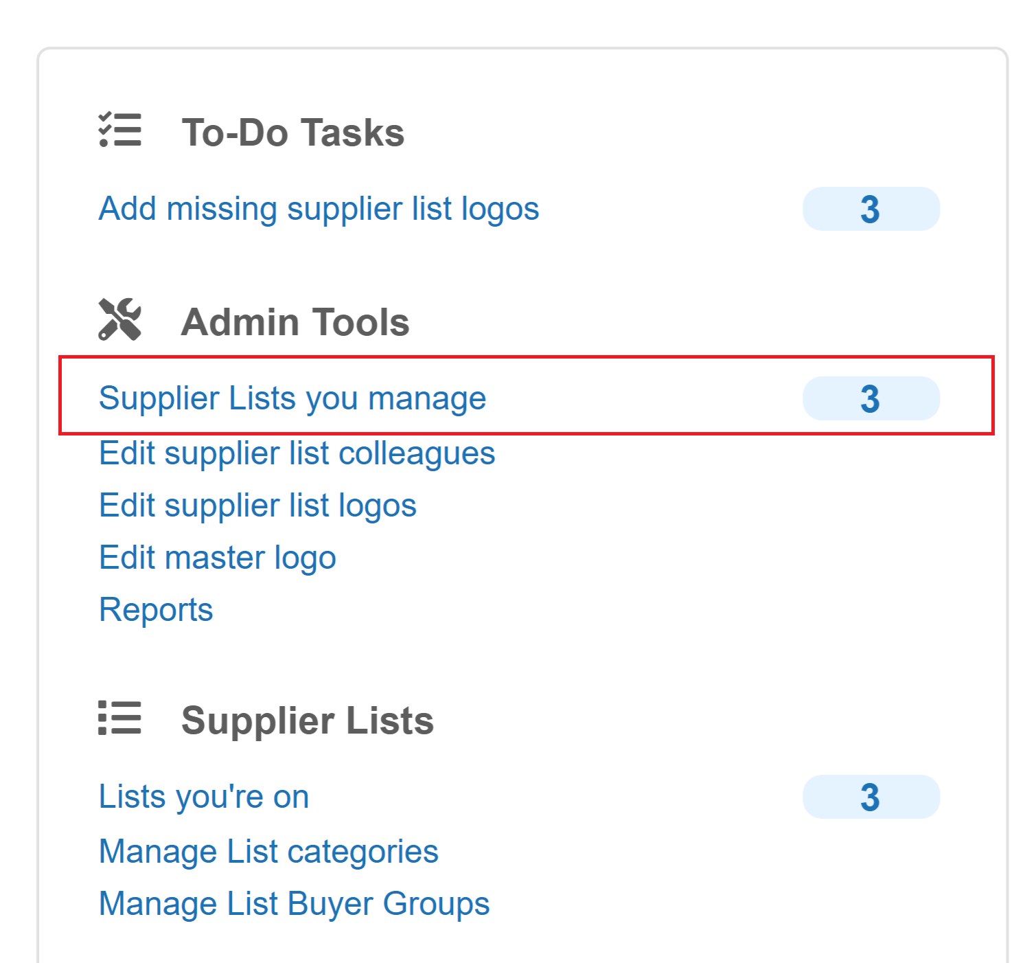 - Go to the Supplier Lists You Manage page via the link on your dashboard.