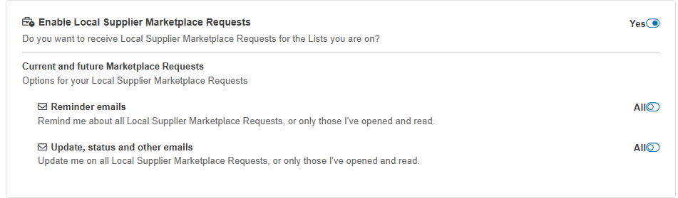 • Do you want to receive local supplier Marketplace requests for the lists you are on?
