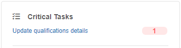 - On your dashboard, click the Update qualifications details link, located below the Critical Tasks heading on the left-hand side.