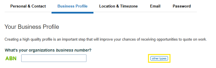 - Select the Other types button to the right of the ABN field.